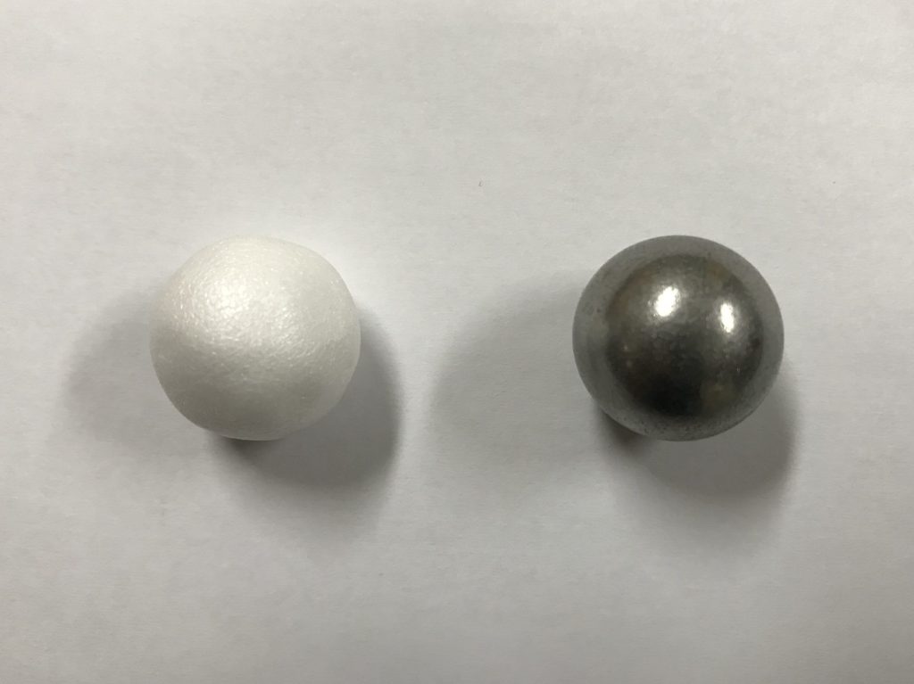 예를 들어 아래 사진을 보시면 스티로폼으로 만들어진 구와 강철로 만들어진 구가 있습니다.