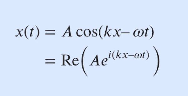 (1)식 또는 (4)식을 (5)식의 복소지수함수로 바꾸어 표현할 수 있지만, 물리적 의미를 해석할 때에는 허수부는 무시하고 실수부만 고려해야 한다는 것을 알 수 있어요.