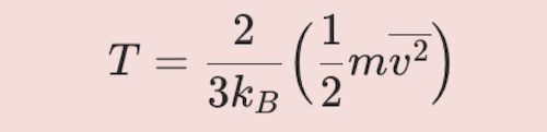 T= {2 \over {3k_B}} \Big( {1 \over 2} m \overline{v^2} \Big)