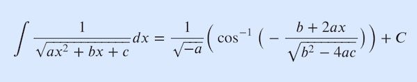재미있는 적분 문제 하나를 풀어 보도록 해요. 과학을 하다보면 여러 적분 문제를 풀게 되는데요. 그중에서 아래 문제가 어떻게 풀어지게 되는지 구해보도록 해요. 이때 \(a<0\)으로 가정하겠습니다. \begin{align}\int{{1}\over{\sqrt{ax^2 + bx +c}}}dx = {1 \over{\sqrt{-a}}} \Big(\cos^{-1}\big(-{{b+2ax}\over{\sqrt{b^2 -4ac}}}\big)\Big) + C\end{align} 그리고 윗 식에서 대문자 \(C\)는 적분상수입니다. [풀이] \(P\)로 주어진 다음 적분을 풀어 봐요. \begin{align}\tag{1}P=\int{{1}\over{\sqrt{ax^2 + bx +c}}}dx\end{align} 먼저 위 … Read more